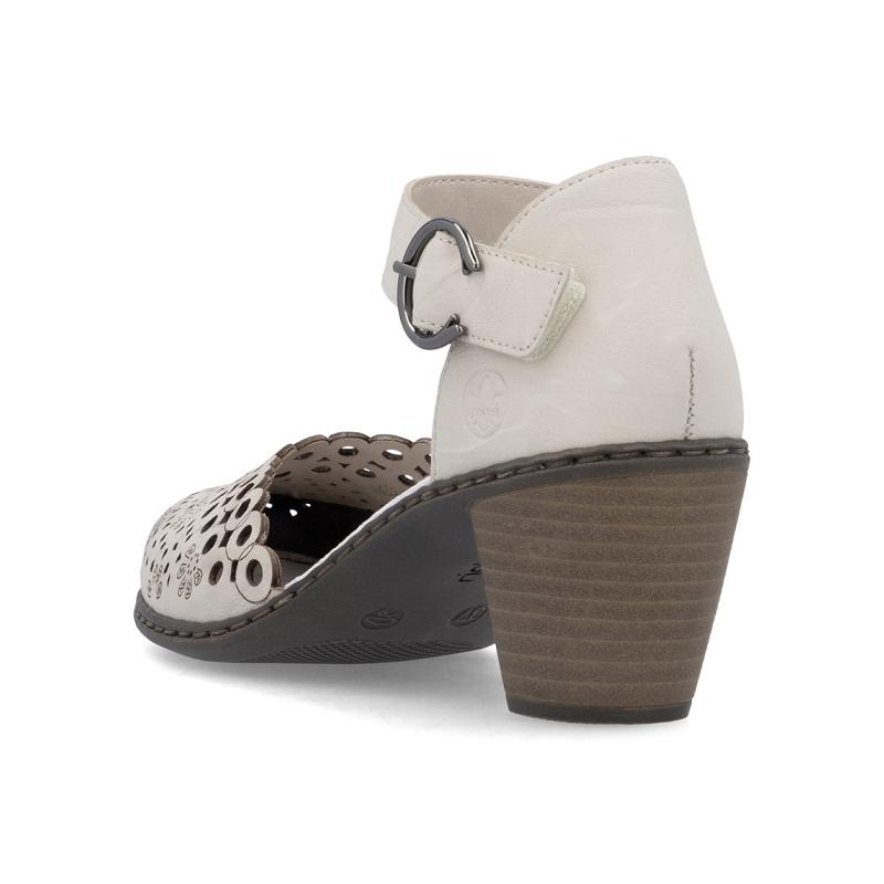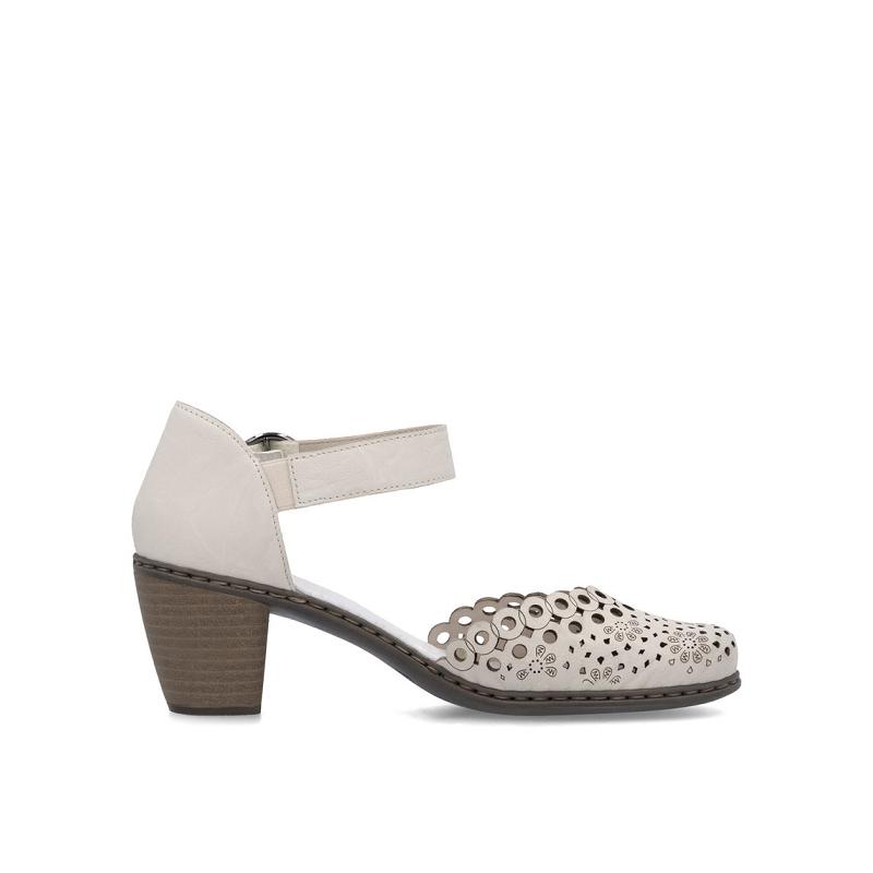 Style et confort - amis pour la vie ! Ces escarpins Rieker blancs en cuir lisse convainquent par leur design moderne et leur grand confort. La chaussure est fabriquée à l'aide d'un montage cousu, ce qui la rend particulièrement robuste et flexible. Une fermeture velcro permet un enfilage rapide et confortable. Le style décontracté rafraîchit habilement le design. La semelle avec talon bloc absorbant les chocs et légère offre un confort de marche optimal. Bien-être assuré !